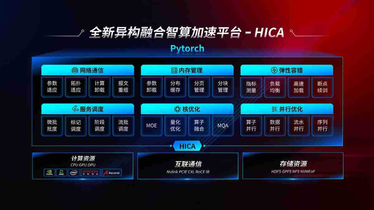 通过自研的服务层、、中间适配层、、、、以及调度编排算法,,,采用数据并行、、、、模型并行等多种并行方式,,把并行计算任务进行有效的分解,,使其分别由相应的软件栈和算力资源来承接。。。。当GPU资源变化,,,,HICA可以实时动态调度计算子任务并调整模型拓扑和架构,,,以充分聚合各种算力资源。。。。